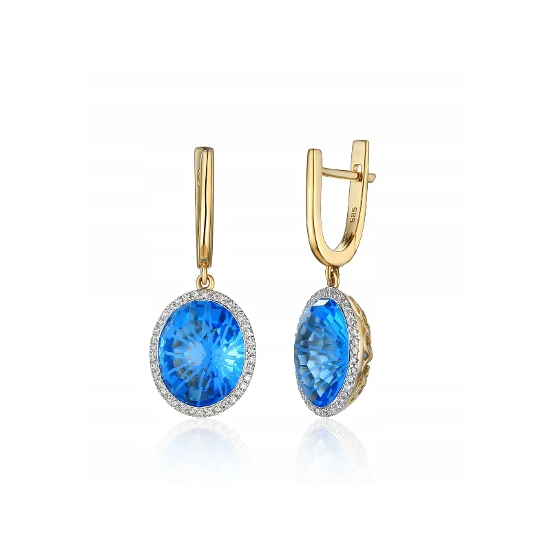 KOLCZYKI 585 TOPAZ DIAMENTY ZAPIĘCIE ANGIELSKIE (na zamówienie)