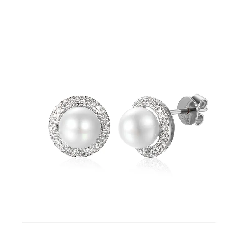 ZŁOTE 14K KOLCZYKI PERŁY DIAMENTY ( NA ZAMÓWIENIE )
