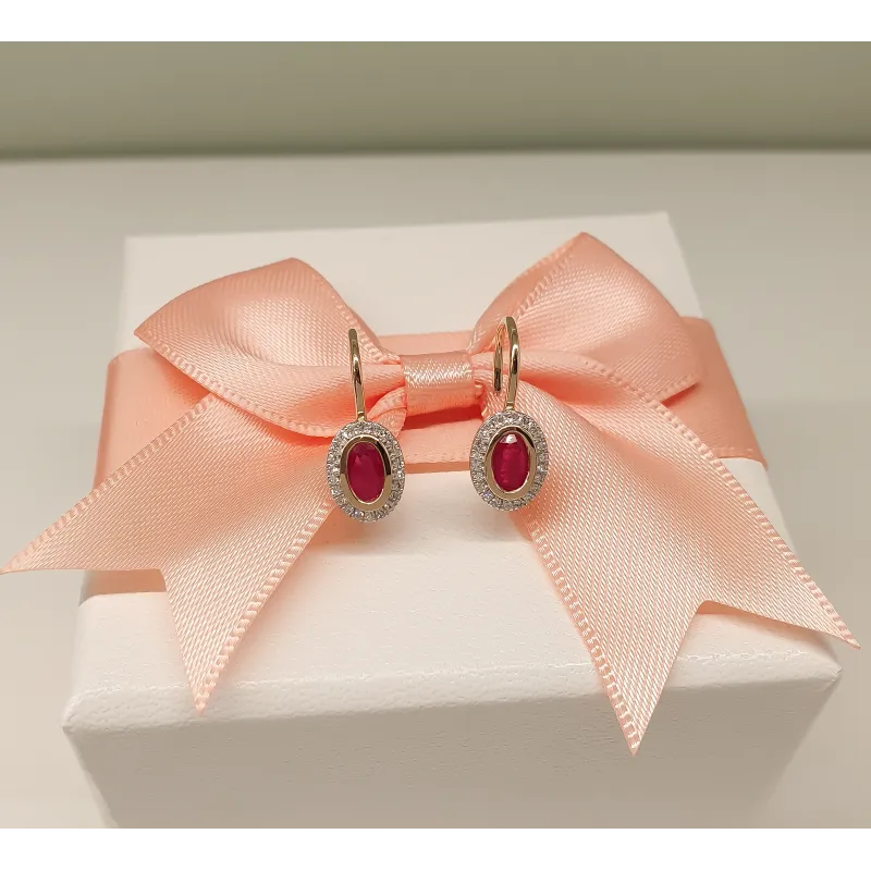 ZŁOTE KOLCZYKI585 RUBIN I DIAMENTY ( NA ZAMÓWIENIE )