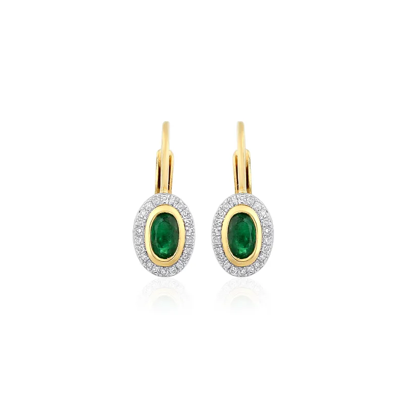 ZŁOTE KOLCZYKI 585 SZMARAGD I DIAMENTY ( NA ZAMÓWIENIE )