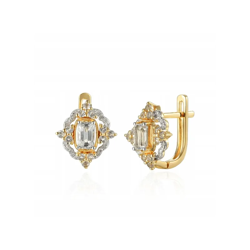Kolczyki 585 Biały Topaz Diamenty Zapięcie Angielskie(na zamówienie)