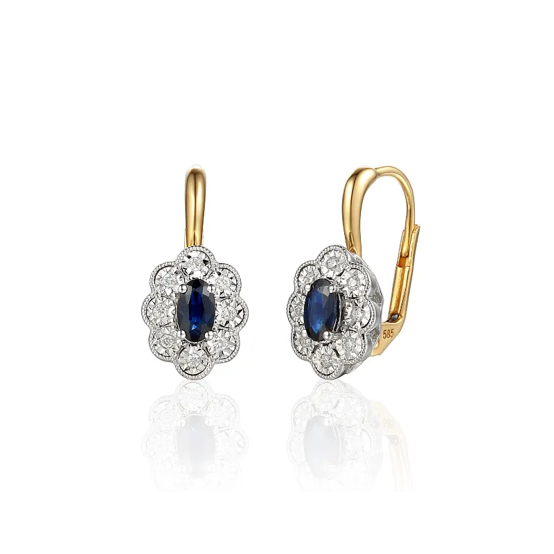 ZŁOTE 585 KOLCZYKI SZAFIR I DIAMENTY PATENTKA ( NA ZAMÓWIENIE )