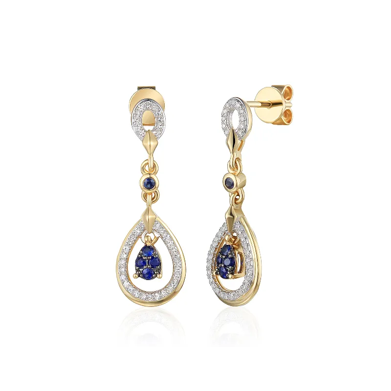 Złote Kolczyki z Szafirami i Diamentami Próba 585 ( NA ZAMÓWIENIE )