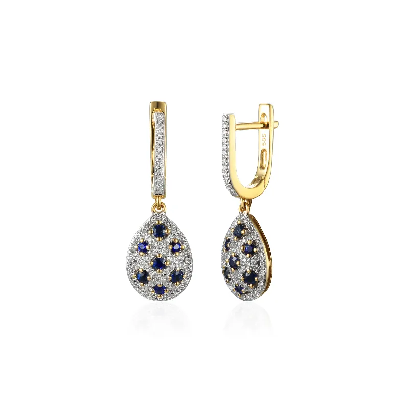 Złote Kolczyki z Szafirem i Diamentami Próba 585( NA ZAMÓWIENIE )