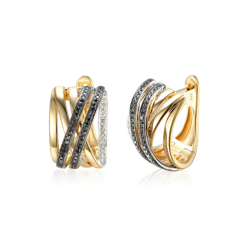 ZŁOTE KOLCZYKI Z CZARNYMI DIAMENTAMI PRÓBA 585 (NA ZAMÓWIENIE)