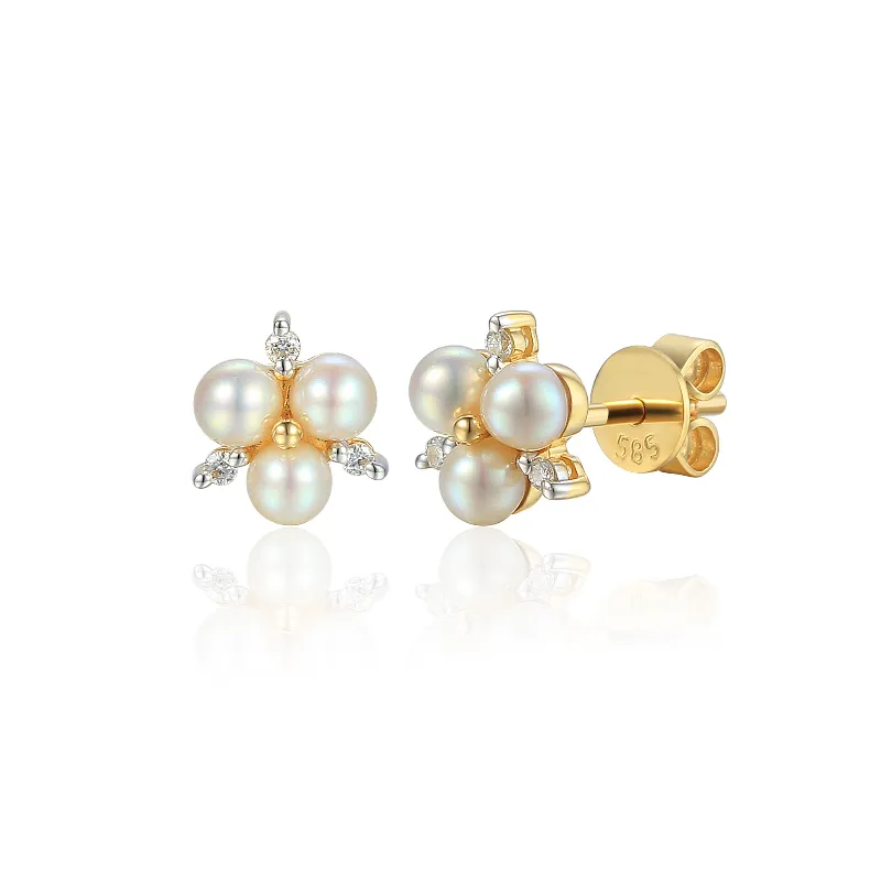 Eleganckie 14K Kolczyki z Perłami i Diamentami (Na Zamówienie)