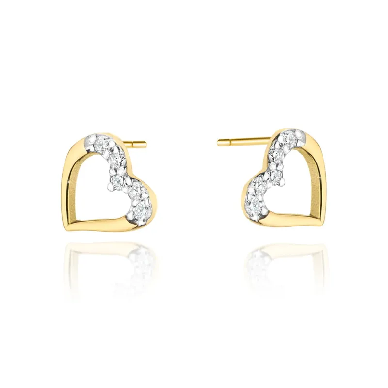 Złote 585 Kolczyki Serca z Diamentami Sztyft (na zamówienie)