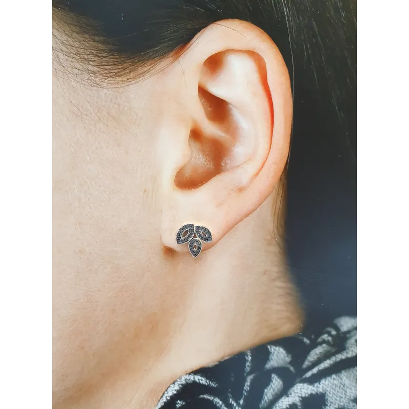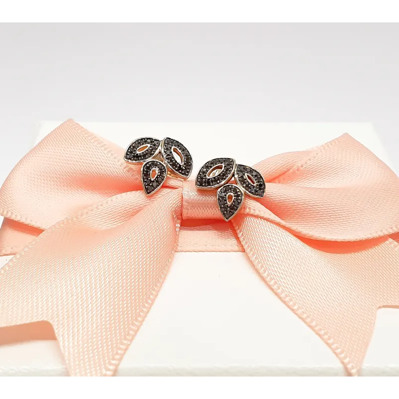 ZŁOTE KOLCZYKI LISTKI CZARNE DIAMENTY PRÓBA 585