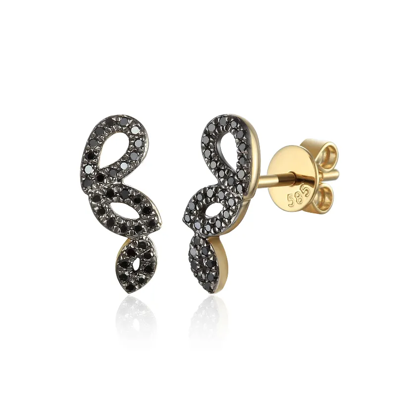 ZŁOTE 585 KOLCZYKI LISTKI CZARNE DIAMENTY SZTYFT