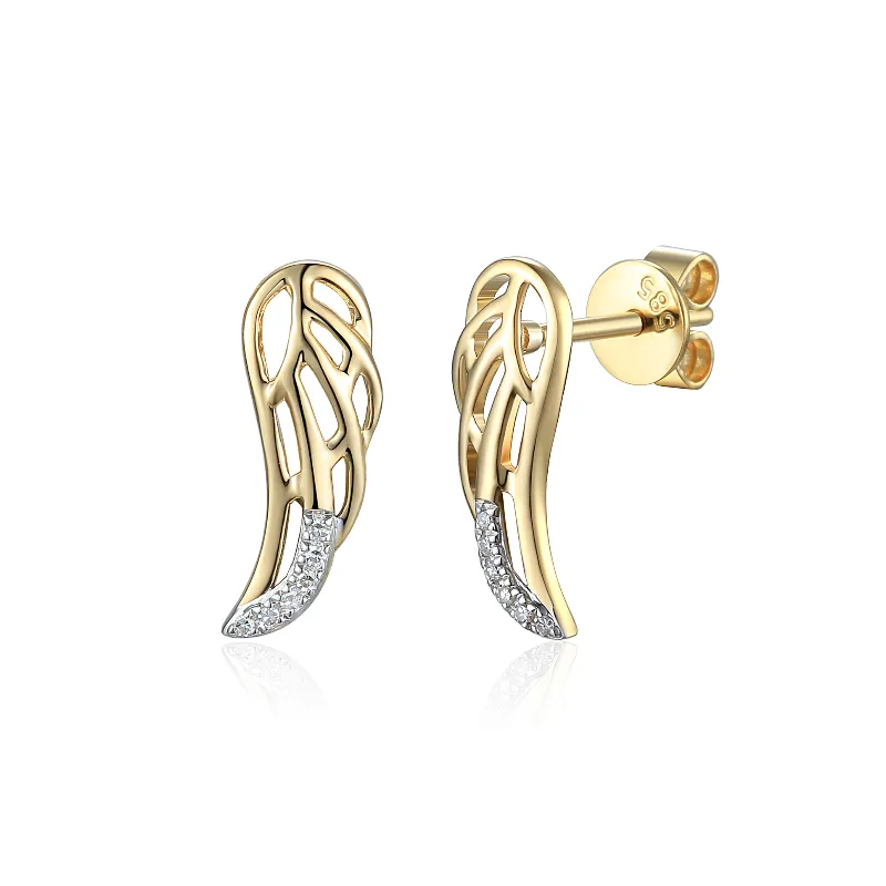 ZŁOTE KOLCZYKI SKRZYDŁA DIAMENTY pr 585 SZTYFT (NA ZAMÓWIENIE)