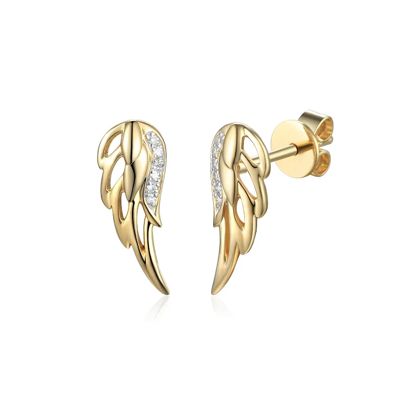 ZŁOTE 14K KOLCZYKI SKRZYDŁA Z DIAMENTAMI SZTYFT (NA ZAMÓWIENIE)