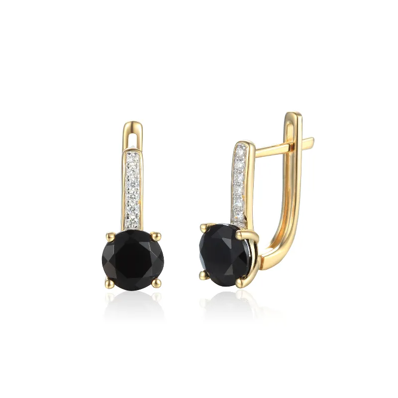 Złote 585 Kolczyki Agat Diamenty Angielskie