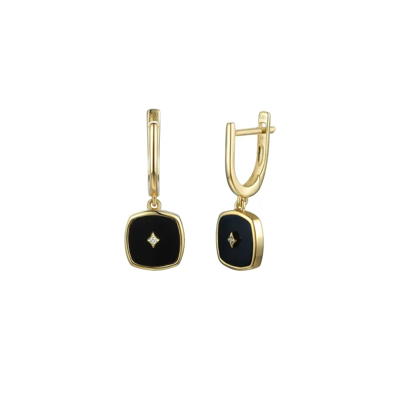 Złote 585 Kolczyki Agat Diamenty Angielskie