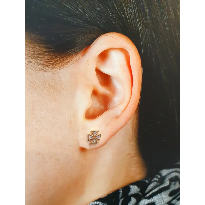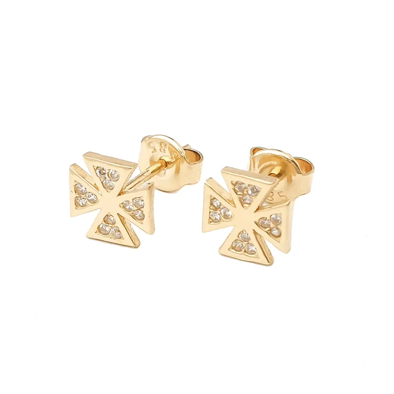 Złote Damskie Kolczyki 585 z Cyrkoniami Sztyft