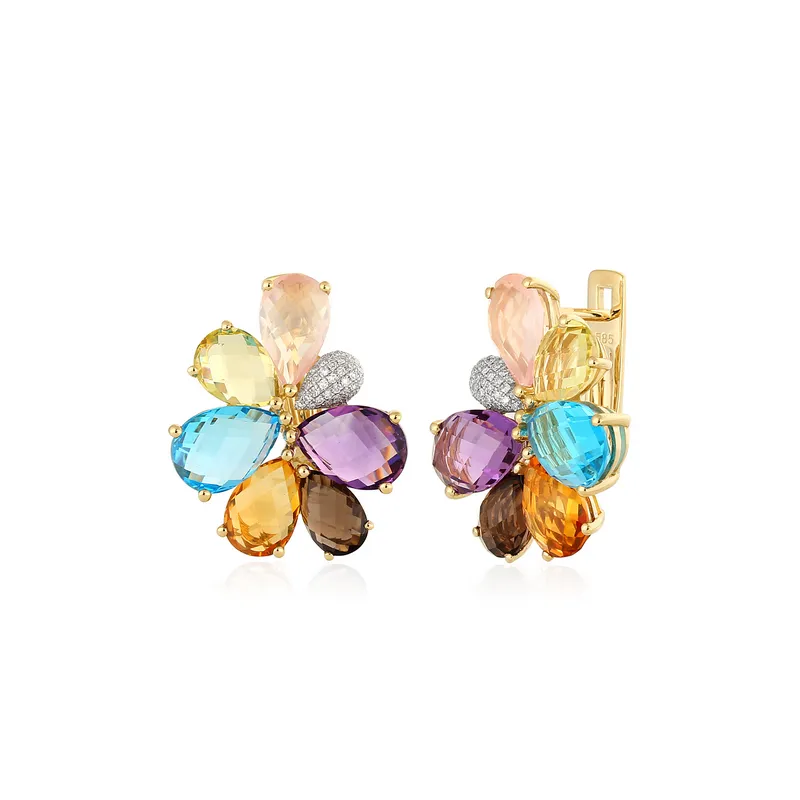 Złote 14K Kolczyki Ametyst Topaz Cytryn Brylanty( NA ZAMÓWIENIE )