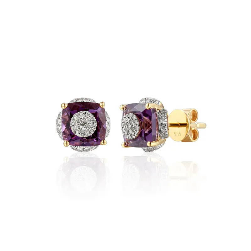 Złote Kolczyki Ametyst Diamenty Próba 585