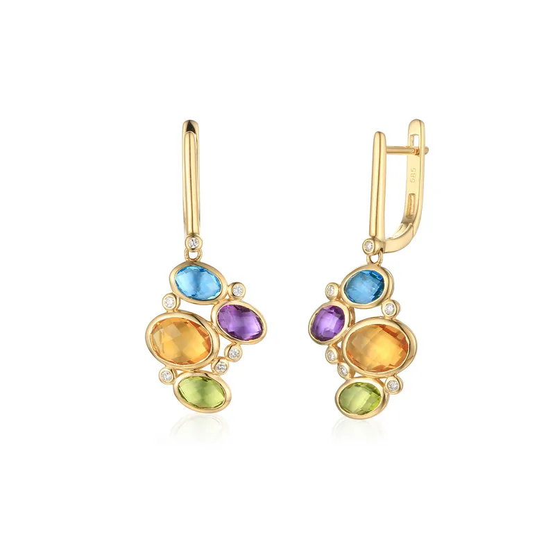 Złote 585 Kolczyki Ametyst Topaz Perydot Brylanty ( NA ZAMÓWIENIE )