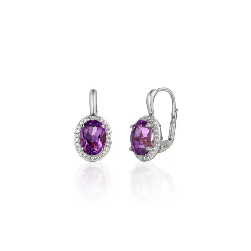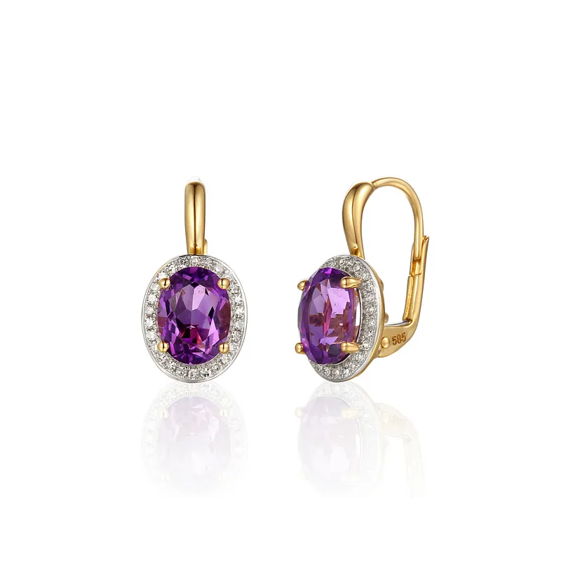 Złote Kolczyki Ametyst Diamenty Próba 585 Patentka