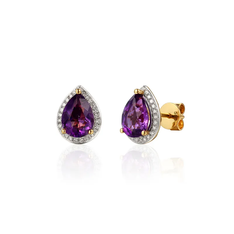 Złote Kolczyki Ametyst Diamenty Próba 585 Sztyft