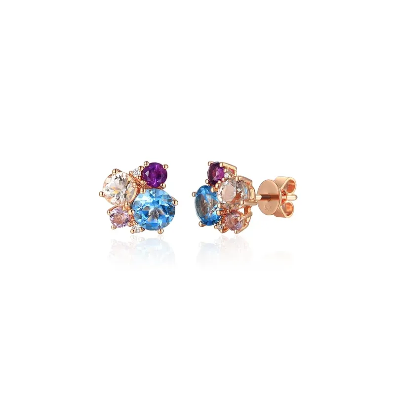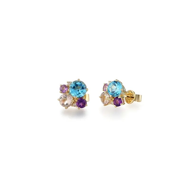 Złote 585 Kolczyki Ametyst Topaz Morganit Diamenty