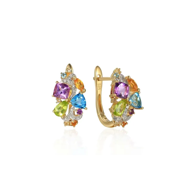 Złote 585 Kolczyki Ametyst Topaz Cytryn Perydot Brylanty( NA ZAMÓWIENIE )