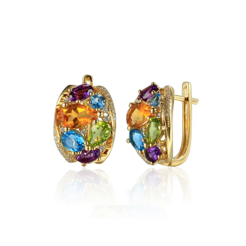 Złote 585 Kolczyki Ametyst Topaz Cytryn Brylanty ( NA ZAMÓWIENIE )
