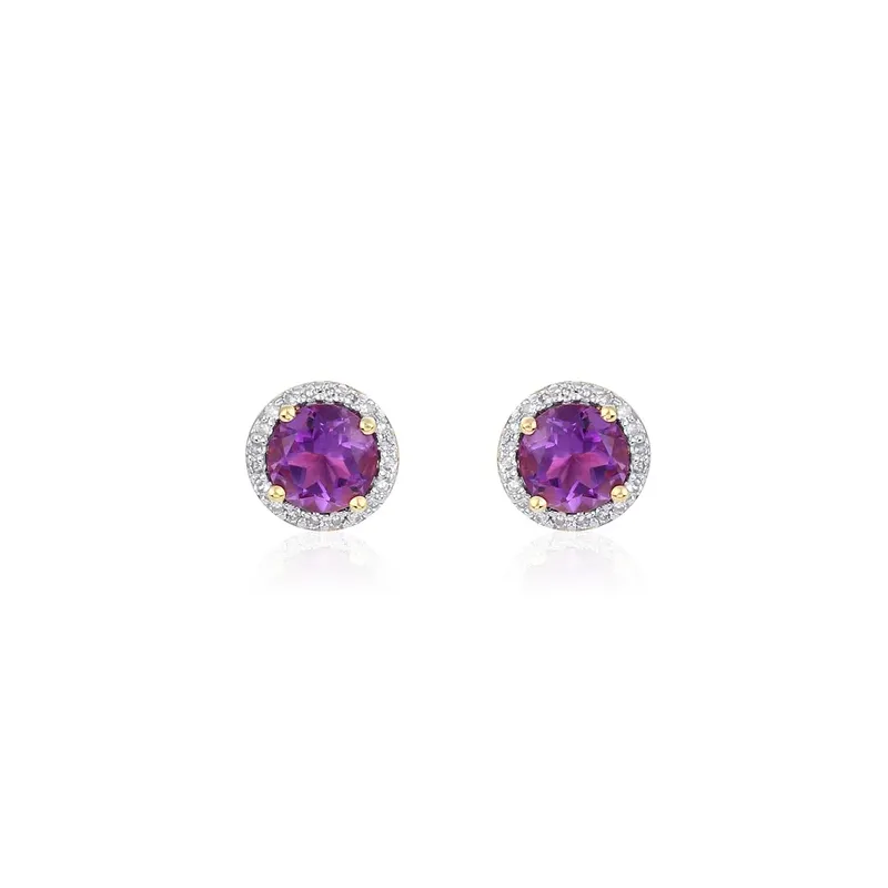 Złote Kolczyki Ametyst i Brylanty Sztyft pr 585