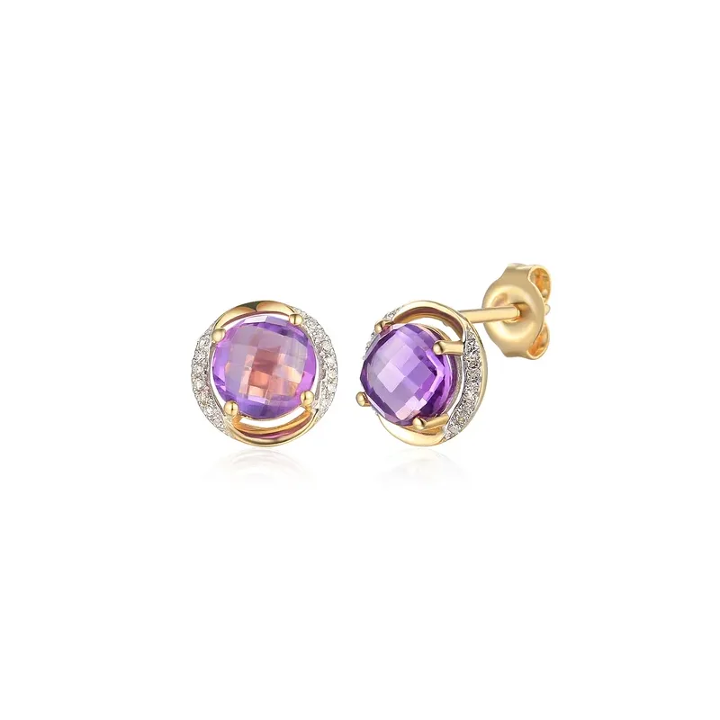 Złote Kolczyki Ametyst Diamenty Próba 585 Sztyft