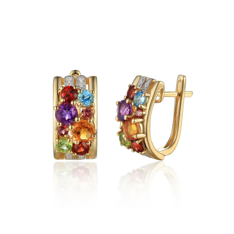 Kolczyki Ametyst 585 Granat Topaz Cytryn Brylanty