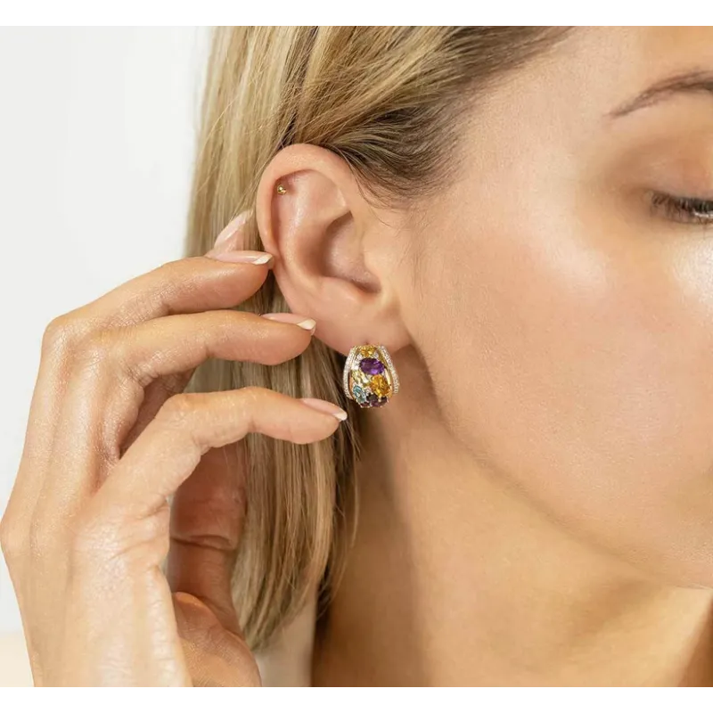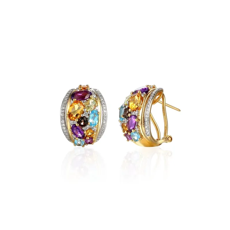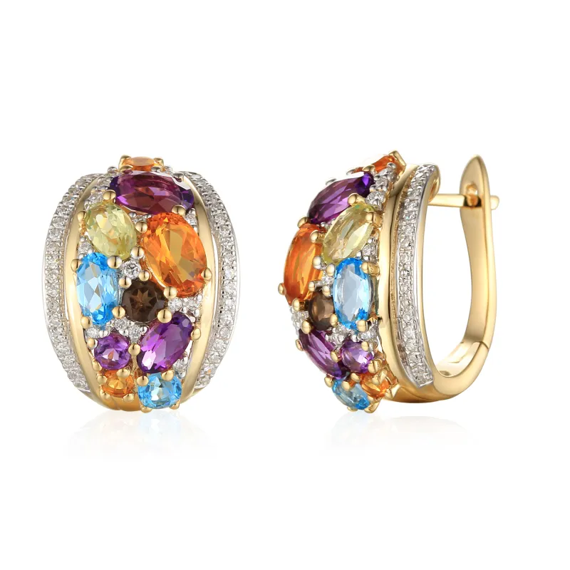 Złote Kolczyki Ametyst Topaz Cytryn Brylanty pr585( NA ZAMÓWIENIE )