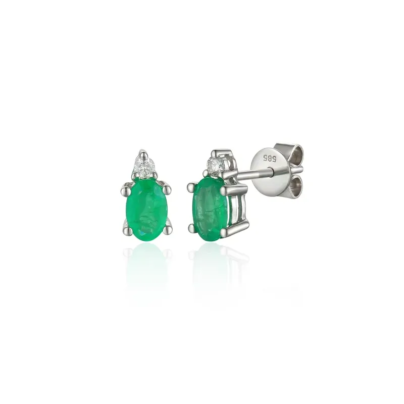 Kolczyki Białe Złoto Szmaragd Diamenty 585 Sztyft ( NA ZAMÓWIENIE )