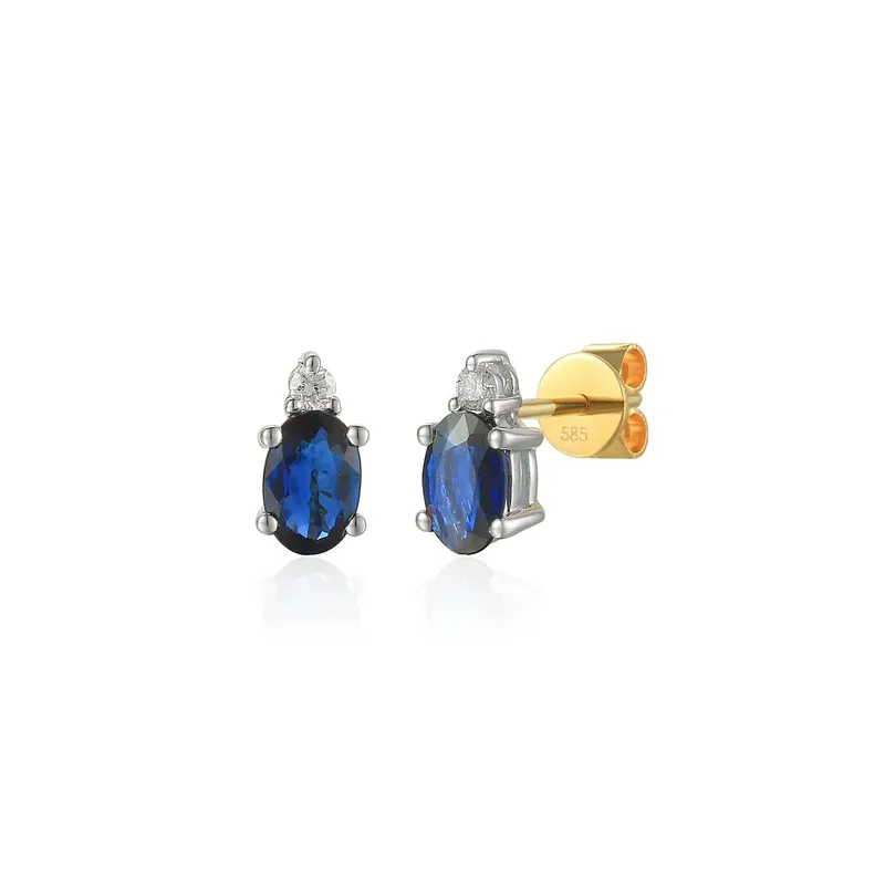Kolczyki Szafir Diament pr 585 Sztyft na Prezent ( NA ZAMÓWIENIE )