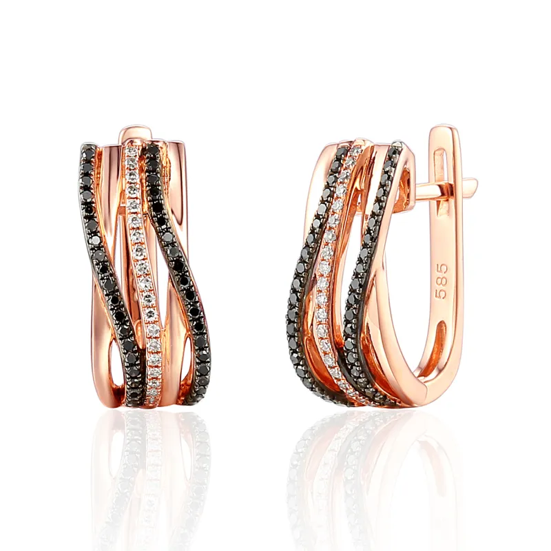 Kolczyki Białe Czarne Brylanty Różowe Złoto pr 585
