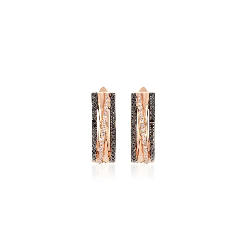 KOLCZYKI RÓŻOWE ZŁOTO 14K BIAŁE I CZARNE BRYLANTY ( NA ZAMÓWIENIE )