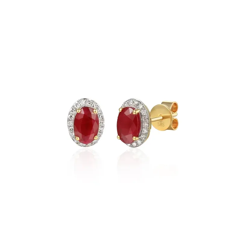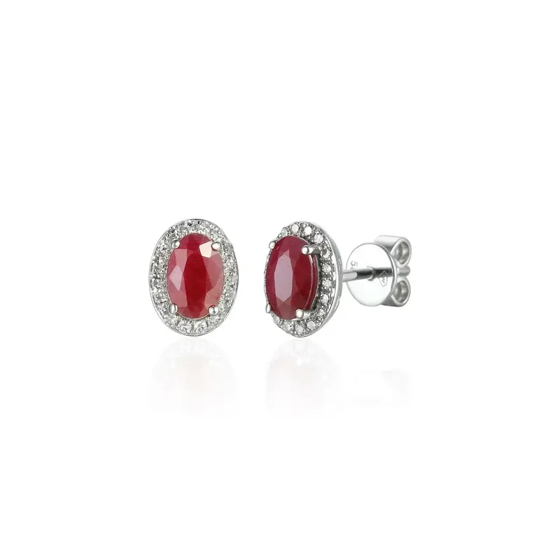 Kolczyki Rubin Diamenty Sztyft Białe Złoto pr 585
