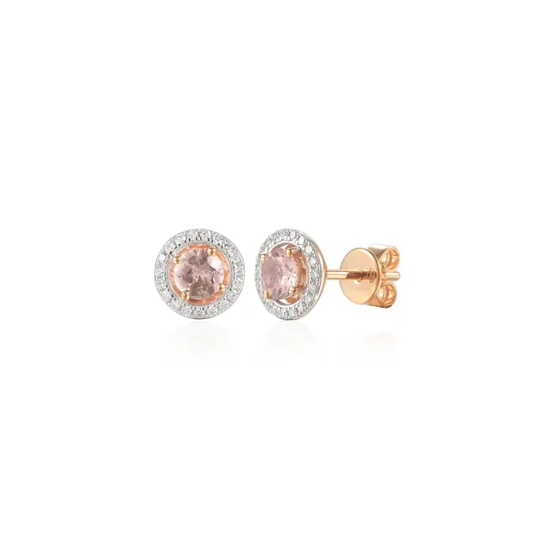 KOLCZYKI MORGANIT DIAMENTY 585 RÓŻOWE ZŁOTO ( NA ZAMÓWIENIE )