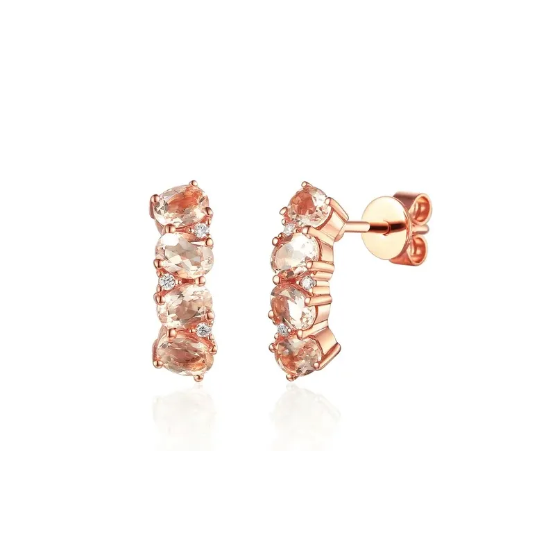 ZŁOTE 585 KOLCZYKI MORGANIT DIAMENTY SZTYFT ( NA ZAMÓWIENIE )
