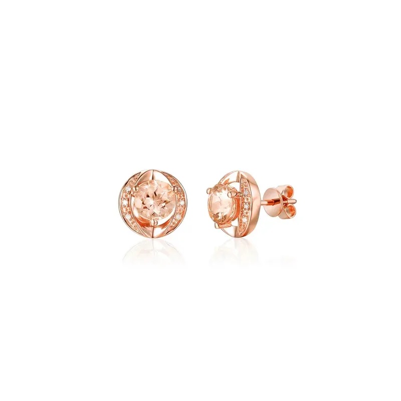 RÓŻOWE KOLCZYKI MORGANIT DIAMENTY SZTYFT pr 585 ( NA ZAMÓWIENIE )