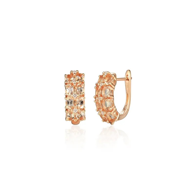 KOLCZYKI 585 MORGANIT DIAMENTY ZAPIĘCIE ANGIELSKIE ( NA ZAMÓWIENIE )