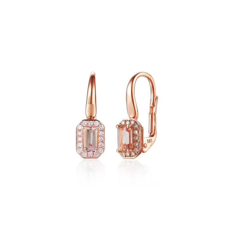 KOLCZYKI MORGANIT DIAMENTY PATENTKA PRÓBA 585 ( NA ZAMÓWIENIE )