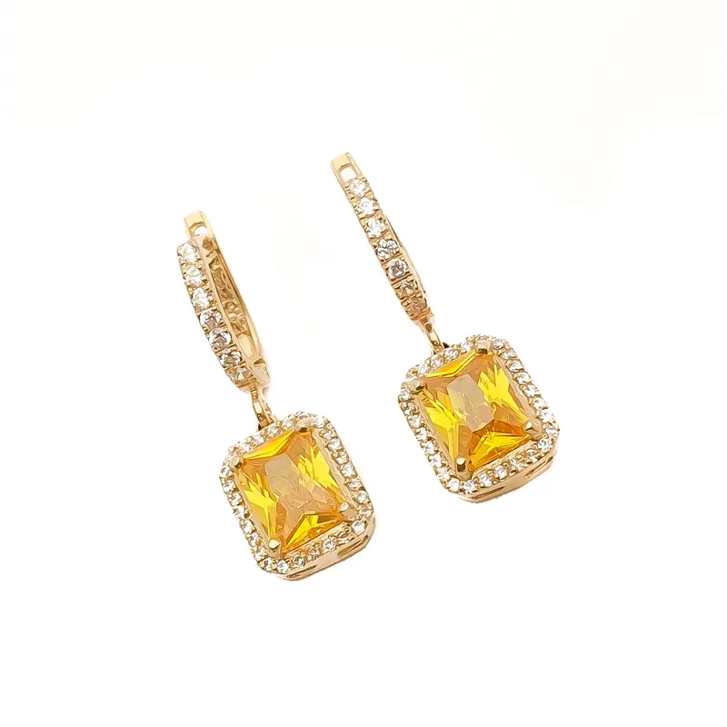 ZŁOTE KOLCZYKI 585 WISZĄCE CYTRYN CYRKONIE ( CYRKONIA
