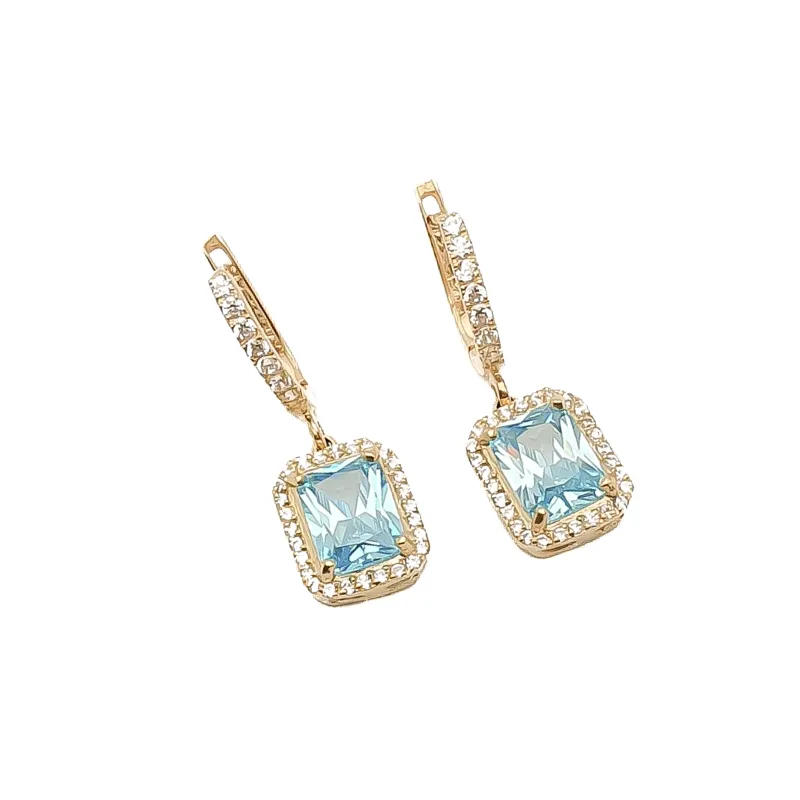 ZŁOTE KOLCZYKI 585 TOPAZ CYRKONIE PRÓBA 585 ( CYRKONIA BARWIONA