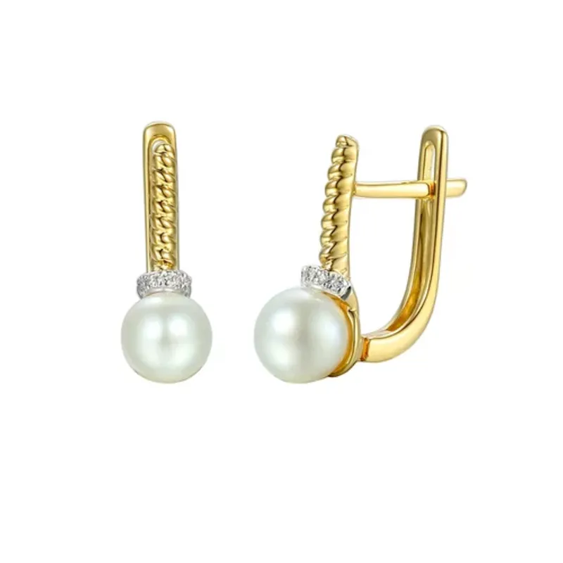 ZŁOTE KOLCZYKI 585 PERŁA DIAMENTY ANGIELSKIE