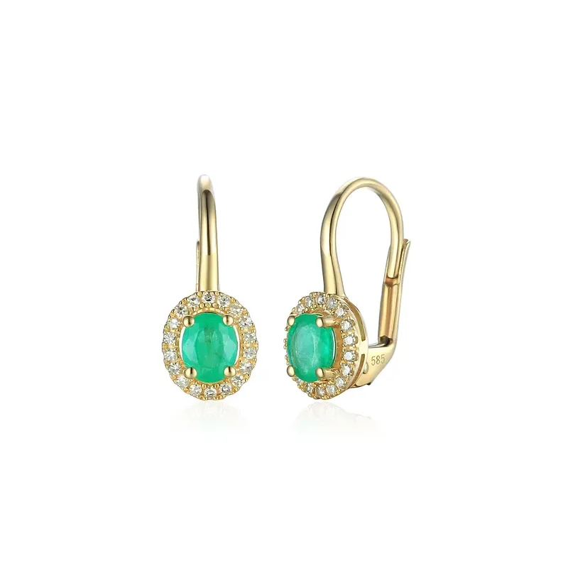 KOLCZYKI SZMARAGD DIAMENTY PATENTKA PRÓBA 585 ( NA ZAMÓWIENIE )