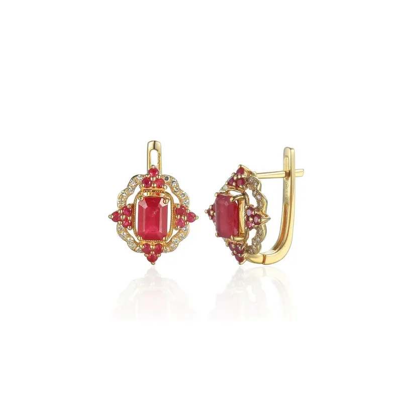 ZŁOTE KOLCZYKI RUBIN DIAMENTY PRÓBA 585 ( NA ZAMÓWIENIE )