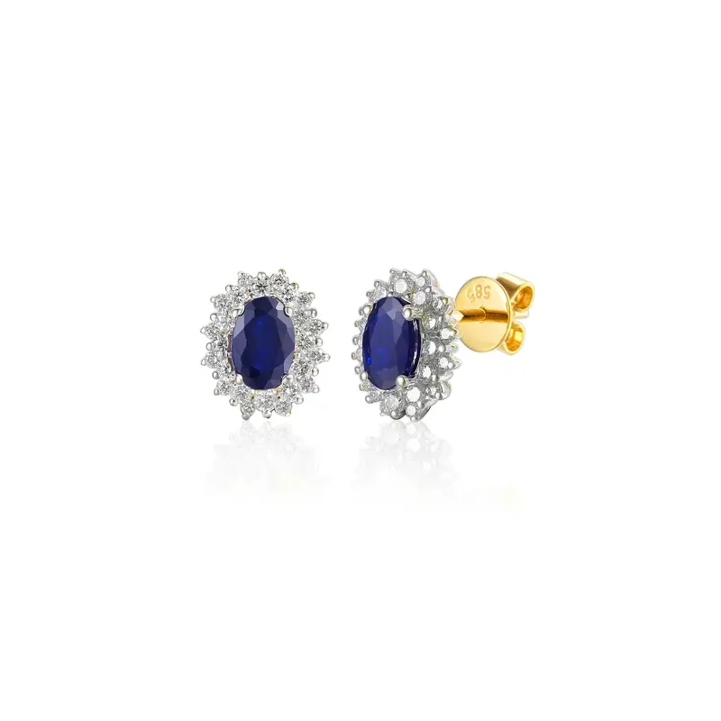 ZŁOTE KOLCZYKI 585 SZAFIR DIAMENTY SZTYFT ( NA ZAMÓWIENIE )