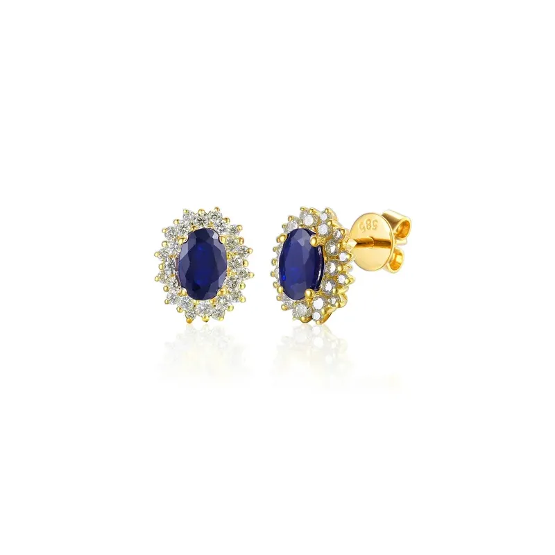ZŁOTE KOLCZYKI SZAFIR DIAMENTY SZTYFT PRÓBA 585 ( NA ZAMÓWIENIE )