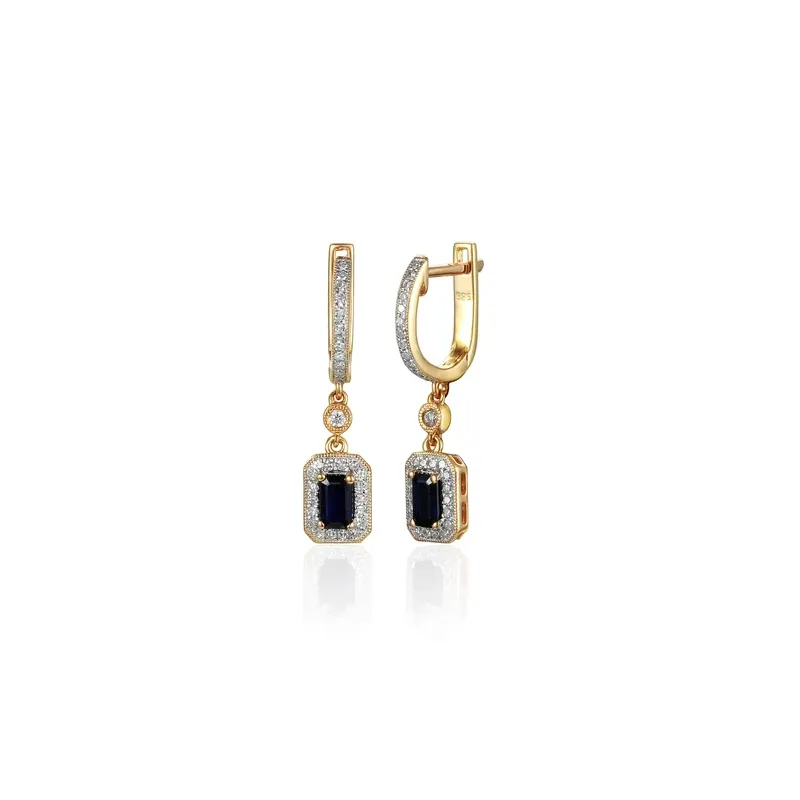 ZŁOTE KOLCZYKI SZAFIR DIAMENTY PRÓBA 585 ( NA ZAMÓWIENIE )