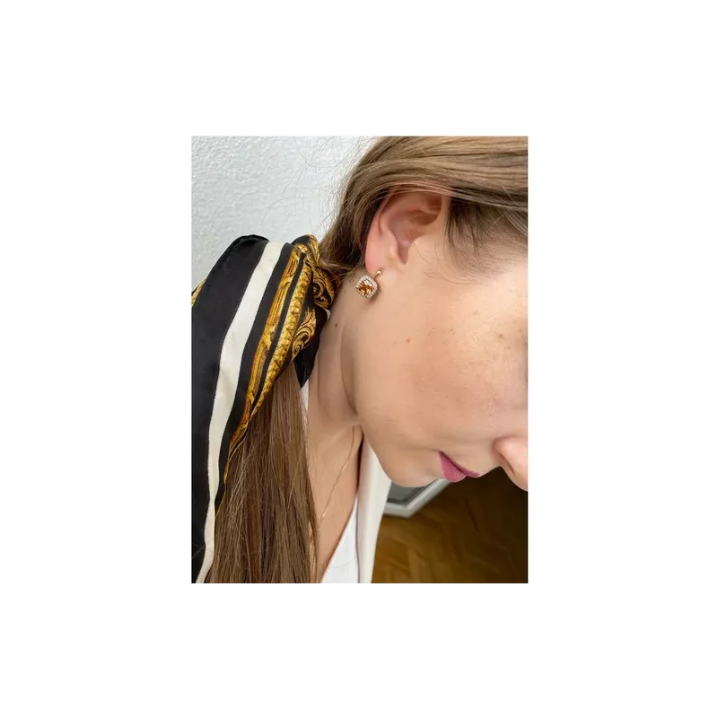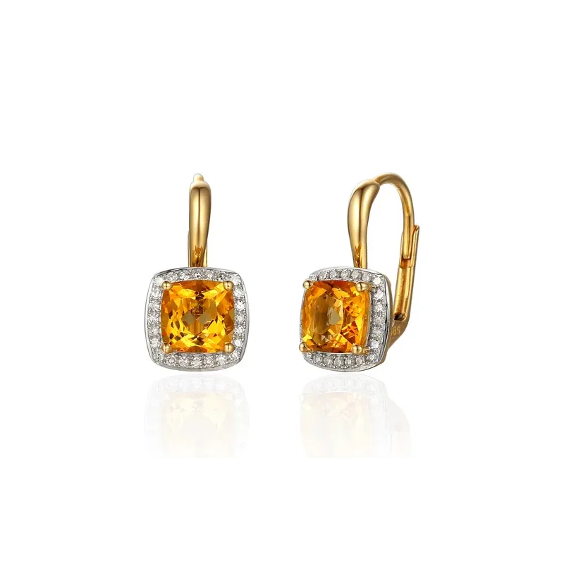 Złote 14K Kolczyki Duży Cytryn Diamenty Patentka