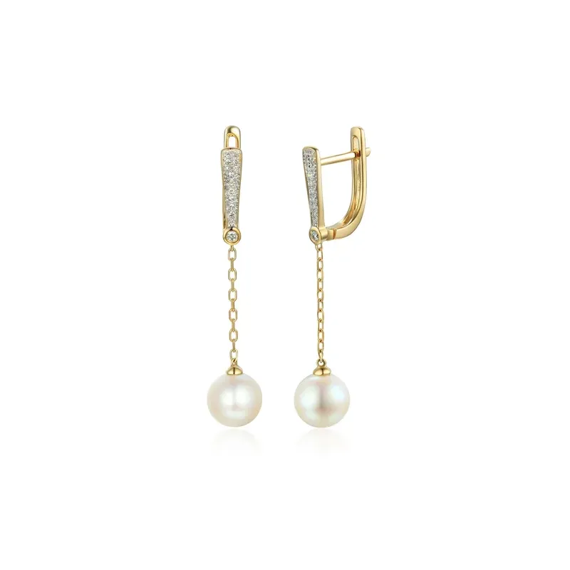 WISZĄCE KOLCZYKI 585 PERŁA DIAMENTY ANGIELSKIE